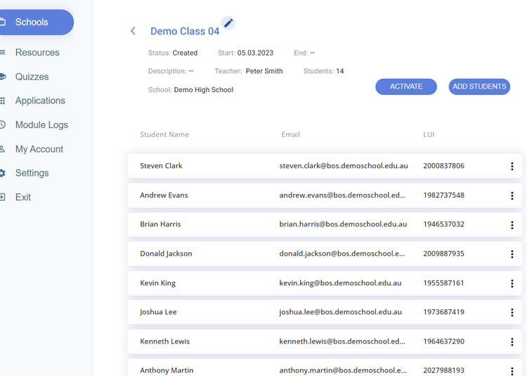 Press the "Activate" button to finalise the class details and prepare the BRAKE Driver Awareness teaching modules.